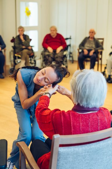 DANCE CARE ist eine Initiative der Tänzer:innen und Choreograf:innen Leila Bakhtali, Tim Gerhards und Jennifer Schecker. Mit langjähriger Erfahrung in freier und soziokultureller Arbeit entwickeln wir seit 2024 künstlerische Formate mit dem Ziel, kreative und soziale Teilhabe von Senior:innen in Pflegeeinrichtungen zu ermöglichen. Im Zentrum steht die Frage, wie künstlerische Prozesse Verbundenheit, Ausdruck und Selbstwirksamkeit fördern können. Die intensiven, oft berührenden Erfahrungen vor Ort bestärken uns in dem Wunsch nach Kontinuität und darin, neue Formate für kreative Teilhabe zu entwickeln – besonders für Menschen, die durch Alter, Krankheit oder Isolation aus dem gesellschaftlichen Blick geraten.